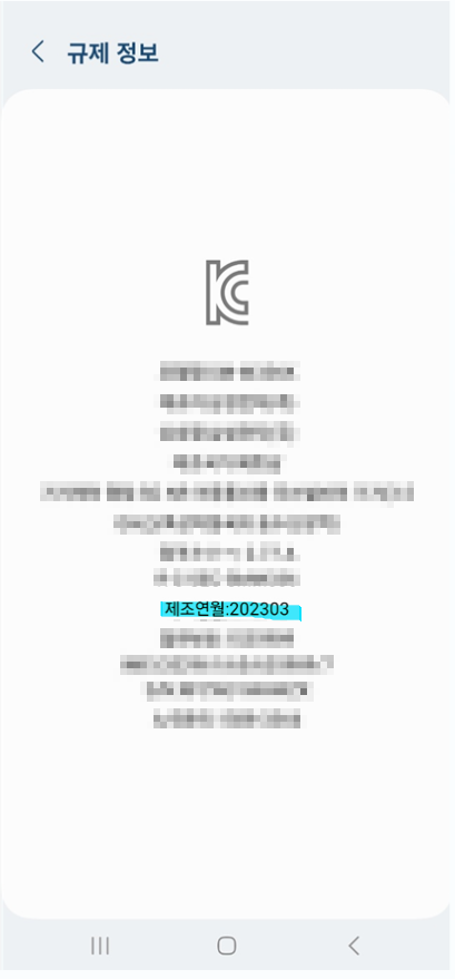 규제 정보에는 핸드폰의 각종 인증번호, 제조사 정보, 그리고 우리가 찾고 있는 제조일자가 모두 들어있어요. 이 정보들은 법적으로 표시해야 하는 내용들이라서 정확하고 신뢰할 수 있어요.