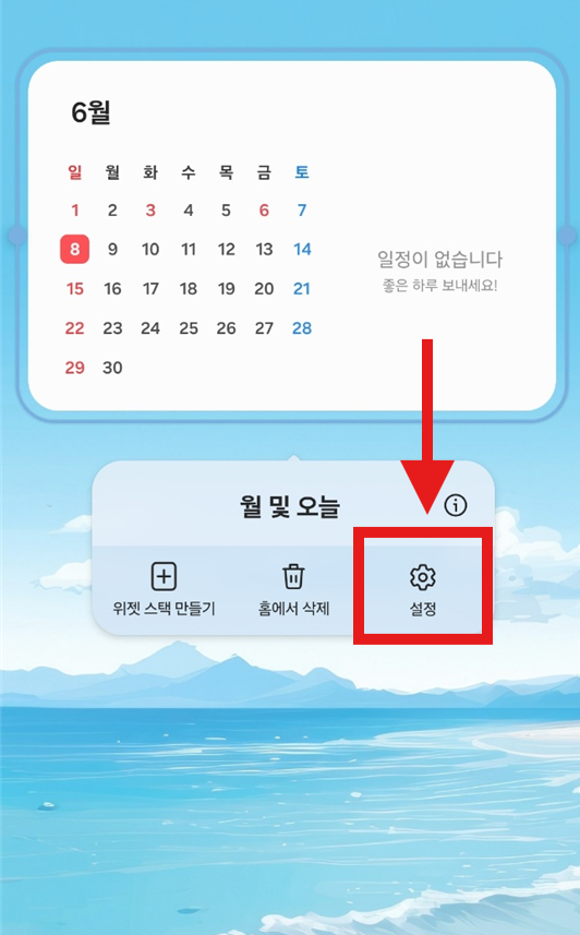 - 위젯을 길게 눌러 설정 메뉴에 들어가세요