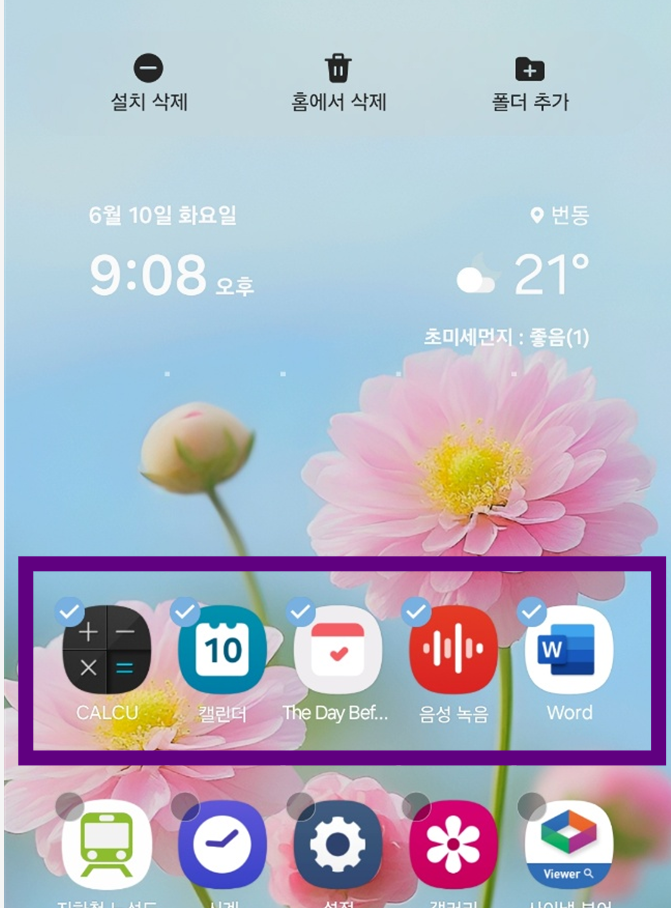 홈 화면을 정리하기 위한 첫 번째 단계예요. 이 방법만 알아도 홈 화면 관리의 절반은 끝났다고 보시면 돼요.