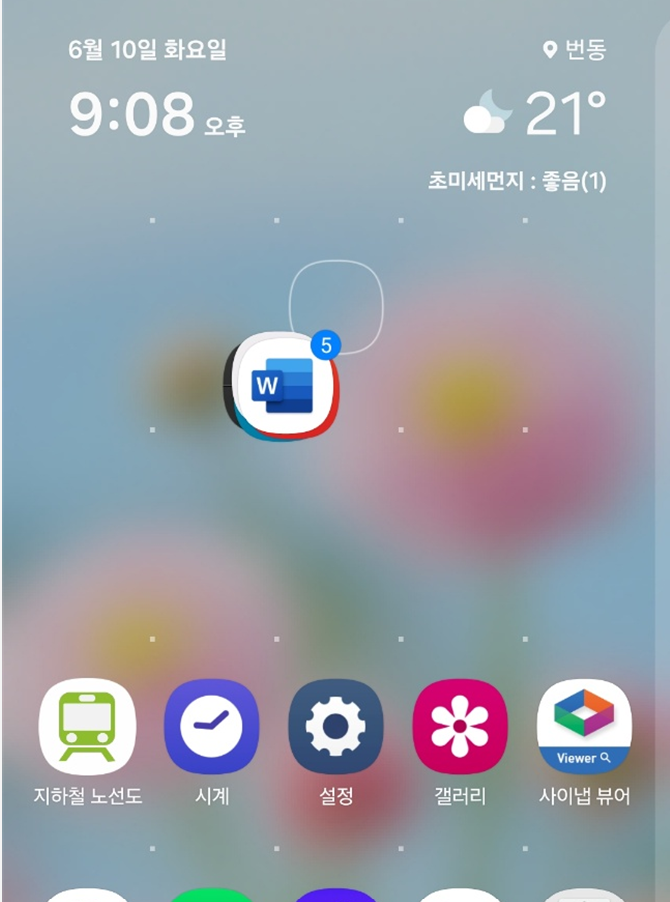 - 홈 화면에서 앱 아이콘이 없는 빈 공간을 찾아주세요