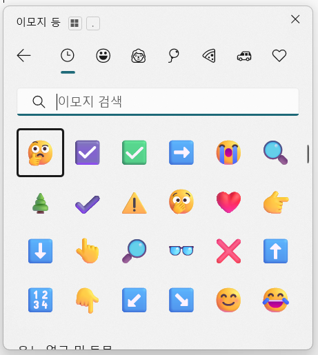 이 작은 창이 바로 이모지를 선택할 수 있는 패널이에요. 처음 보시면 신기하실 거예요!