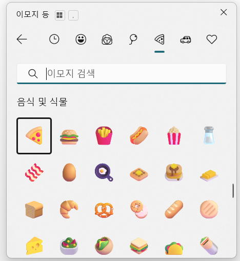- '음식'이라고 쓰면 음식 관련 이모지들이 모두 모여요