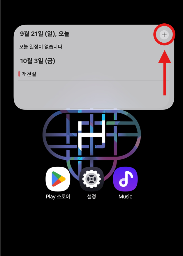 위젯이 홈화면에 추가되었다면, 이제 중요한 일정을 추가해볼게요. 위젯 오른쪽 상단에 있는 '+' 버튼을 눌러주세요.