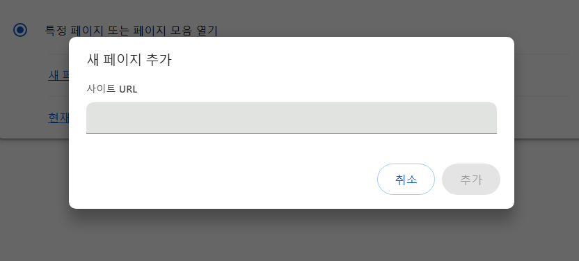 '새 페이지 추가' 버튼을 누르면 주소를 입력할 수 있는 창이 나타날 거예요. 여기에 시작 페이지로 설정하고 싶은 사이트 주소를 입력하면 돼요.