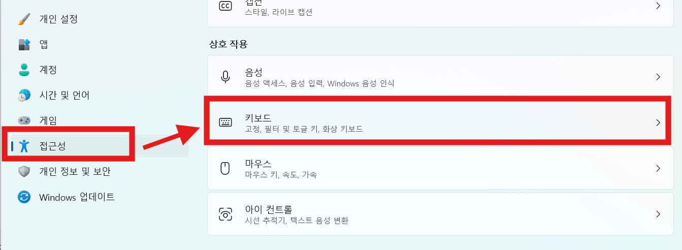 특히 접근성 설정에는 키보드 사용 방식을 변경할 수 있는 다양한 옵션이 있습니다.